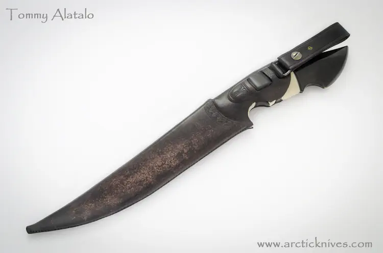 Sheath: Rawhide leather colored black with a buffalo horn belt loop button.